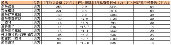 通用性棋牌表(biǎo)现不(bú)佳,地(dì)方(fāng)棋牌也不尽(jìn)如(rú)人意。其中,腾讯出(chū)品的(de)《麻将来了》降幅最大,达(dá)15.7%。而知名度颇高的闲徕(lái)系产品《闲来(lái)麻将(jiāng)》,降幅也过10%。《多乐保皇》则以2.6%的增幅,占据地方棋牌排行(háng)榜的榜首位置。欧陆平台曾介绍过的(de)多(duō)乐、吉祥(xiáng)、微乐等地方棋牌大户,低(dī)调做产品,实(shí)力不可小觑。