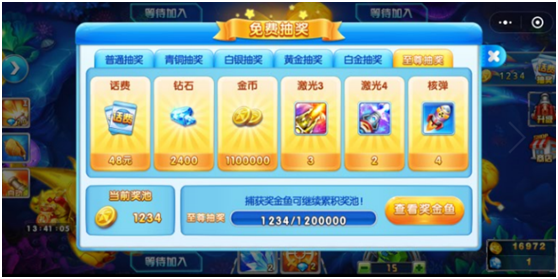 另一种是,玩家可使用钻石(shí)购买(mǎi)道具(jù)“召唤卡”,使用后可马(mǎ)上召唤一只奖金鱼。玩家(jiā)打爆奖金鱼后,奖(jiǎng)金金币的10%会(huì)累(lèi)计(jì)到奖池中去(qù)。奖池累计到一定额度,可触发抽奖,玩家可抽取话费(fèi)券、钻石、金币(bì)及其他游戏道具(jù)。说到(dào)底就形成了:消耗钻石——消耗金币——获取话费券的一个经济闭环(huán)。