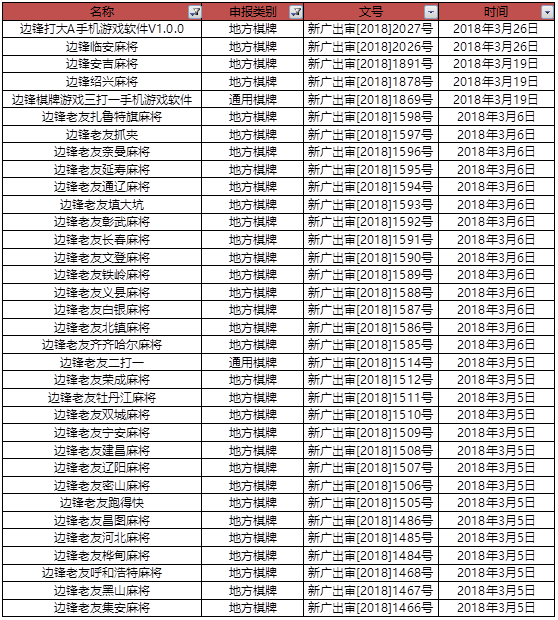 边(biān)锋网络3月过审地(dì)方棋牌高达34款(kuǎn)
