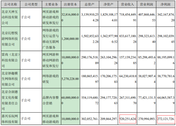 另外,在报告中(zhōng),天(tiān)神娱乐披露(lù)了嘉(jiā)兴(xìng)乐玩在(zài)2017年的营业情况:2017年嘉(jiā)兴(xìng)乐玩营业收(shōu)入达5.2亿元(yuán),净利润2.72亿元。为上市公司贡献(xiàn)巨大(dà)。