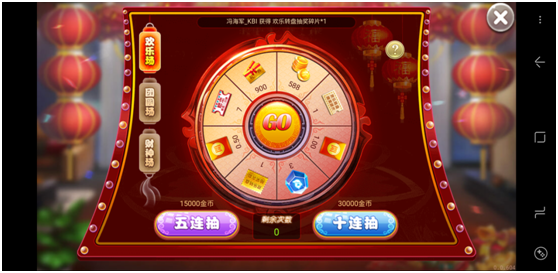 根(gēn)据游(yóu)戏(xì)赢的局数来获得抽奖资格,每赢得一盘(pán)对局获取一(yī)颗幸运草,集满5颗幸(xìng)运草可(kě)开启银转盘抽奖(jiǎng),奖品包括话费券、金币、游戏(xì)道具。集满25棵幸运(yùn)草可开启金转盘(pán)抽奖,奖品和银转盘一样(yàng),但是数额更大。