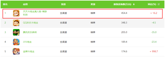 其(qí)旗下主打(dǎ)产品《天天斗地主真人版》,4月(yuè)新装设(shè)备数高达454.4万(wàn)台,击败(bài)了(le)《欢乐斗地主》、《欢乐麻将(jiāng)》等一系列(liè)腾(téng)讯旗下产品,荣(róng)登(dēng)榜首。