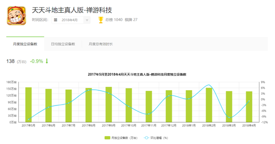 据艾瑞咨询(xún)提(tí)供(gòng)的(de)数据(jù)显示,2018年4月(yuè)棋牌游戏行业新增用户(hù)最高的,就是一家主打通用型(xíng)棋牌的厂商——禅游科技。