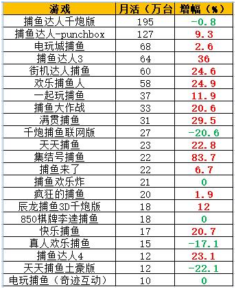 而(ér)欧陆平台根据艾瑞(ruì)咨询(xún)提供(gòng)的数(shù)据统计后发现(xiàn),近段时(shí)间以来(lái),捕鱼游(yóu)戏的发展(zhǎn),可以说是十(shí)分迅猛。数(shù)据显示(shì),4月共有21款捕鱼(yú)游戏月活超(chāo)10万台,其中,保持(chí)增幅(fú)状态(tài)的有8款,持平(píng)1款,另有12款游戏(xì)月活都呈下降趋(qū)势(shì),月独立设备总数为814万台。