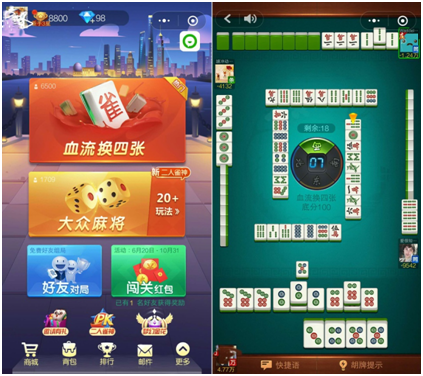 微(wēi)信内的(de)棋牌游戏主要是(shì)基于玩家的熟人社交链发展起(qǐ)来的,在《麻将来了》游戏中,特设(shè)了免费好友组局入口,玩家可以选择和好友(yǒu)一起线上对(duì)局,更加方(fāng)便。