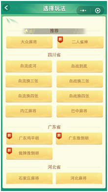 而为(wéi)了(le)解决玩家留存的问题,新版的《麻将来了》也做了新(xīn)的设计。除了在游(yóu)戏大厅界面增(zēng)加了《梦幻金花(huā)》的游戏入口(kǒu)以外,从“更多”里面还新设了“每周新游”,玩家(jiā)从此处可进入《QQ游戏(xì)》小程序,选择其他想要体(tǐ)验的游(yóu)戏。