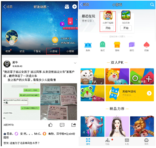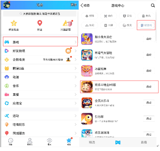 而(ér)在移动QQ和QQ空间,腾讯也(yě)针对(duì)H5棋(qí)牌游戏做了深入布(bù)局(jú),在动态和(hé)QQ空间都分别加了游(yóu)戏入口。