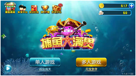而网(wǎng)狐在体验时光(guāng)科技旗下另一款捕鱼游戏(xì)《捕(bǔ)鱼大(dà)满贯(guàn)》时(shí)也发现,从游(yóu)戏大厅(tīng)的设(shè)计来(lái)看(kàn),这款游戏分(fèn)为(wéi)单人和多人两(liǎng)种模式,其中,单人游戏以闯(chuǎng)关为(wéi)主,多人游戏以对(duì)战为主。在游戏商城里面(miàn),玩家可以购(gòu)置游(yóu)戏(xì)金币用于游戏中的(de)炮弹消耗。
