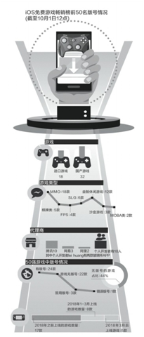 截止到10月1日12点,App Store上的免费游戏畅(chàng)销(xiāo)榜榜单前50名(míng)中,共有5款棋牌游戏(xì)。而在这(zhè)50款游(yóu)戏中,有(yǒu)版号的只(zhī)有24款,国产游戏仅有(yǒu)32款,在2018年3月后上线(xiàn)的新游戏,仅有5款。其中(zhōng)腾讯旗下(xià)的《欢乐斗地主》和《欢乐麻将》虽上榜,但(dàn)是游戏寿命已(yǐ)经超过(guò)3年。