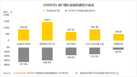 根据Questmobiles最新发布的2018年秋(qiū)季报告显示,三季度(dù),移动(dòng)互联网的(de)用户(hù)仅增长了千(qiān)万,在人口红利逐渐弱化的情况下,如何争夺(duó)存量用户,才是当务之急。而现在,“微信互(hù)联网”的生(shēng)态价值已经形(xíng)成,且影(yǐng)响力越发明显,与“传(chuán)统移动互联网”之间比较,也拥(yōng)有更多优势(shì)。在此背景下(xià),棋牌(pái)游(yóu)戏和微(wēi)信生态(tài)的联手,又会迎来(lái)怎样(yàng)的化(huà)学反应呢(ne)?