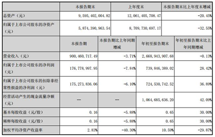报告中显示,2018年前三季度,公司实现营业收入26.69亿元,同比减少0.13%,同期公司净利润约为7.40亿元,同比增长(zhǎng)了28.42%。其(qí)中,第三季度公司(sī)营业收入(rù)达到9亿元,同比减少3.71%,净(jìng)利约(yuē)1.77亿元,同比减少(shǎo)7.84%。