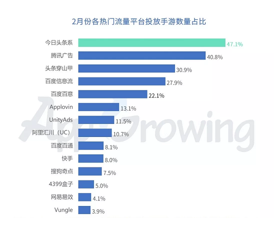 今日(rì)头条系,腾讯广告 依然为手(shǒu)游广告(gào)主较为看重的(de)渠道,均有超过40%的手(shǒu)游投(tóu)放广告时会选择这两个渠道(dào)。而头条穿山甲及百(bǎi)度(dù)百意这两个广告平台也较受手游(yóu)广告主(zhǔ)的欢迎,均名列 Top5。