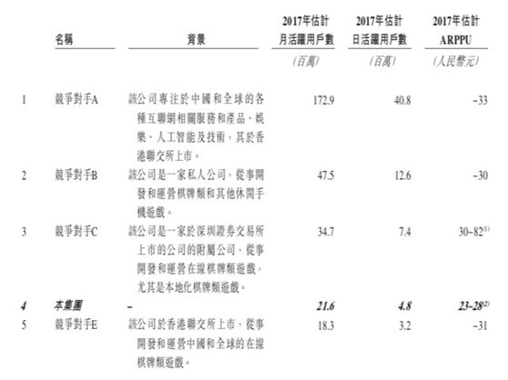 招股(gǔ)书(shū)显示,按(àn)2017年收入计算,禅游科技(jì)在国内(nèi)棋(qí)牌市场位居第五,而前(qián)四名具体(tǐ)是哪家公司,我们(men)也可以通过其显示的背景(jǐng)资料和市(shì)场规(guī)模,猜个八(bā)九不(bú)离十(shí)。