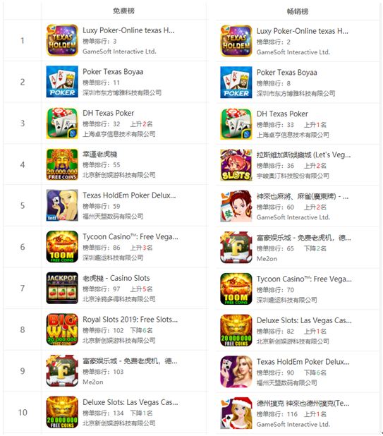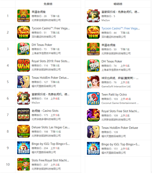 Google Play赌场游戏(xì)免费(fèi)榜(bǎng)和畅销榜排名
