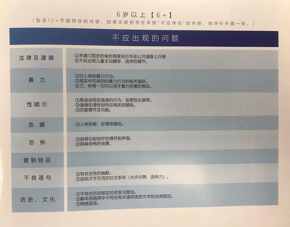 比如在18+一级里(lǐ),分法律(lǜ)与道德、暴力、性暗示(shì)、恐怖、管制(zhì)物品、不良语句、历(lì)史文化7个小(xiǎo)项,如果某产品存在如“暴力”一项里的“鼓励/奖励恶意PK”,就不符合标准。