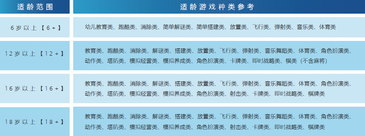 下附游戏系统及游戏类型适龄参考: