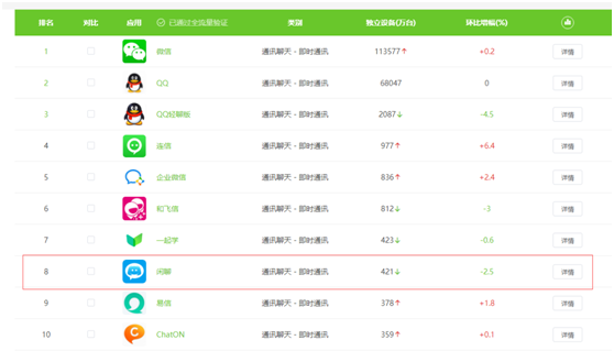 “闲聊”APP十一月(yuè)月度活跃设(shè)备数421万