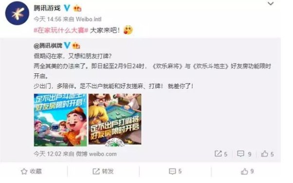 今(jīn)天下午(wǔ),腾讯棋(qí)牌官(guān)微宣布,即日起至(zhì)2月9日24时,《欢乐麻将》与《欢(huān)乐斗地主》好友房功能限时开(kāi)启。