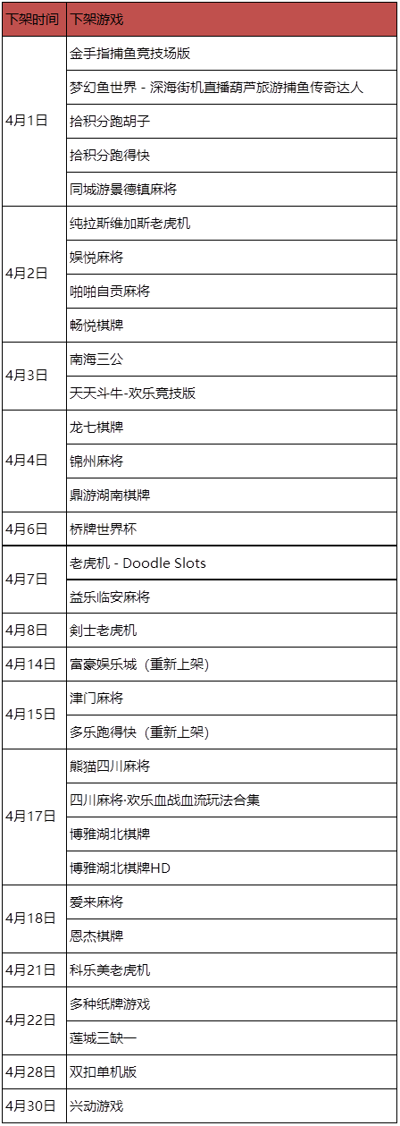 据七麦数(shù)据(jù)提供的资料显示,2020年4月App Store中(zhōng)国区上架棋牌游戏共8款(不包(bāo)括英文游(yóu)戏名称及重新(xīn)上架的棋牌(pái)游戏),下架棋牌(pái)游戏33款,包括《熊猫四川麻将》、《多乐(lè)跑得快》(重新上架)、《博(bó)雅湖北棋牌》、《兴动游戏》等....