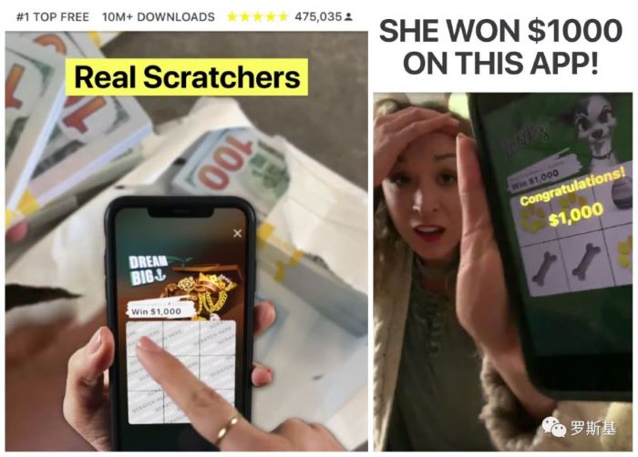 除了出手阔绰的“撒钱”方式(shì)和优秀(xiù)的游戏质量(liàng),《Lucky Day》在买量(liàng)上也毫不手软。广(guǎng)告(gào)素(sù)材更换频(pín)繁(fán)且投放(fàng)的数量高,前三投放渠(qú)道分别(bié)为Instagram,Facebook,以及Audience Metwork,投(tóu)放(fàng)素材以视频为主,广告中包(bāo)含(hán)大量的(de)真(zhēn)钞,以及得(dé)奖后兴奋的人,广告所带来的丰富奖励让玩家的沉浸感得到了大(dà)幅提升。