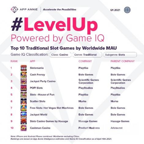 全球传统类老虎机手(shǒu)游月活用户排行榜