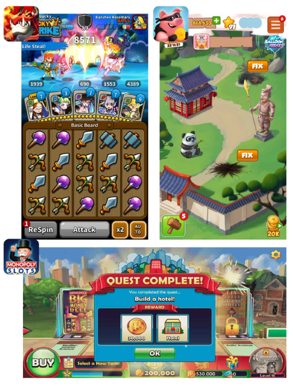 Puzzle RPG》,有结合了模拟建造的《Coin Master》和《Monopoly Slots》。至此(cǐ),Slots手游厂(chǎng)商的内(nèi)卷之路卷出了花。