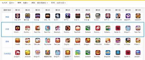 印(yìn)度软件(jiàn)应用畅(chàng)销榜单中,社交(jiāo)类APP占据了大半,所以具有社交属性的棋牌(pái)游戏同样受欢(huān)迎。目前各厂商在印度推出的棋牌游戏(xì)中(zhōng),不仅(jǐn)可以(yǐ)通过(guò)分享链(liàn)接(jiē)邀请朋友一起玩,还加入了各种(zhǒng)排行(háng)榜,包括赛季排行(háng)榜、好(hǎo)友排行(háng)榜(bǎng)、国(guó)家排行榜、世(shì)界排行榜(bǎng),排(pái)名靠前(qián)还能够(gòu)获得(dé)金币奖励。