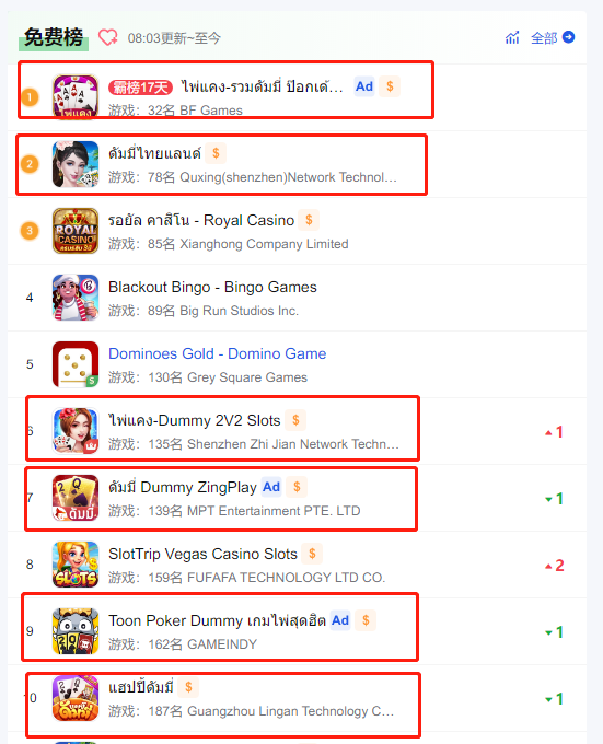 Dummy是泰国(guó)的本土棋牌游(yóu)戏(xì)玩法(fǎ),同时也是泰(tài)国的国(guó)民棋(qí)牌游戏玩法之一。在泰国的Google Play和App Store的卡牌游戏排行榜(bǎng)中,Dummy玩法的游戏占多数。