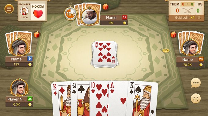 这是一款源于沙特(tè)阿拉伯的棋牌(pái)游戏,同(tóng)样以合作方式进行(háng),使(shǐ)用32张牌组(从(cóng)标准国际套牌中删除(chú)所有的(de)2、3、4、5、6和小丑),每个花色的(de)卡(kǎ)牌从大到(dào)小(xiǎo)等(děng)级为A-K-Q-J-10-9-8-7。