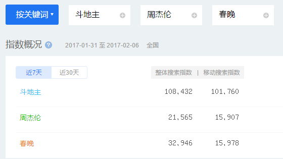 可能在很多人眼中,棋牌游(yóu)戏就(jiù)是LOW的代名词。可事实上,不论是身边的案例,还(hái)是互联网(wǎng)上的大数据,都在(zài)揭示着棋牌游(yóu)戏不断发展的大趋势(shì)。App Stroe实(shí)时(shí)搜索热榜中的搜索热词:斗(dòu)地主、扎(zhā)金花、斗牛、德州扑(pū)克等基本上常年占(zhàn)据一半。在百(bǎi)度指数(shù)上(shàng)的(de)数据也非常惊人(rén),仅斗(dòu)地主这一(yī)个关键词,日均检索量就超过(guò)100000+。可(kě)能大(dà)部分人对于100000+没什么(me)概念(niàn),与(yǔ)之相(xiàng)对应的,“周杰伦”的搜索指(zhǐ)数为20000+,“春(chūn)晚(wǎn)”的搜(sōu)索指数为30000+。