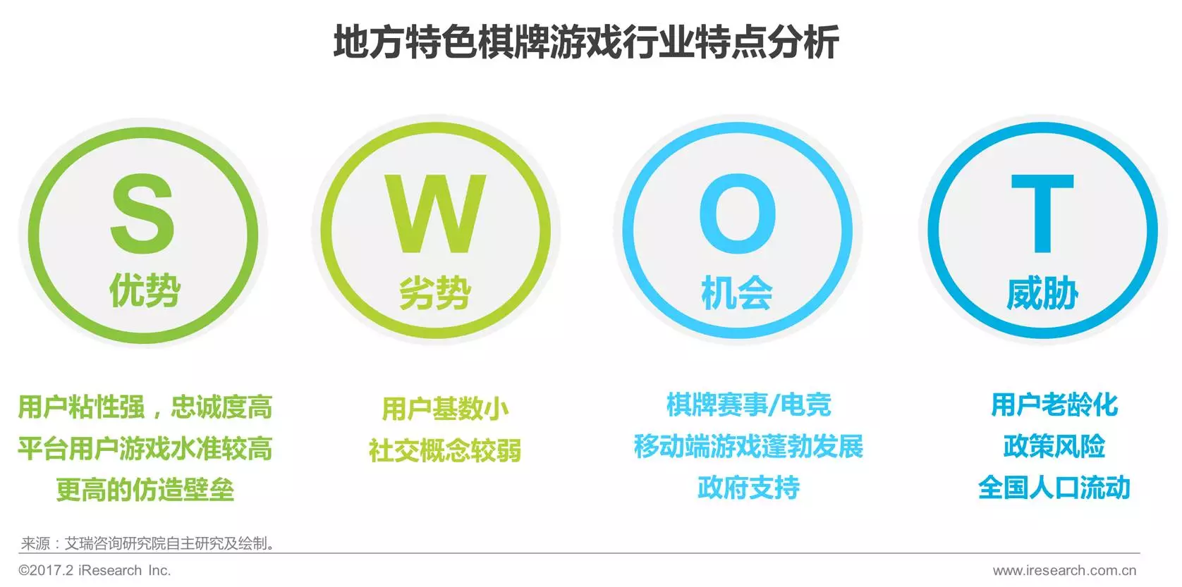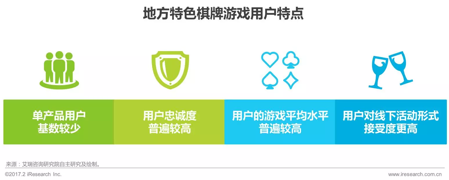 2、地方特色棋牌市场拥有独特的用户群体。考虑到多数二线以下城市居民平时(shí)的网络活动并不丰富,地(dì)方特色棋牌游戏平(píng)台则是接触到这群用(yòng)户的(de)绝佳途径。因此,收购地方特(tè)色棋牌游戏平台(tái)不仅能够给资本方带来稳定的收益,更(gèng)可以为其(qí)吸(xī)收(shōu)一大批珍贵(guì)的用户资源。