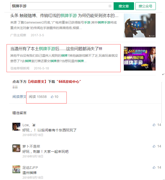 在微信普及(jí)率不断增加的今天,三(sān)四(sì)线城市的地方生(shēng)活服务类公众号,成了我们父辈获取资讯非常重要的一个渠道。而棋牌(pái)游戏不欺老不(bú)欺(qī)小的游戏特性,决定了我们(men)的父辈也是棋牌(pái)游戏的目(mù)标客户。而(ér)这些地方公众号,对他们来说更是(shì)最权威的意见领(lǐng)袖。在一线城市,各(gè)种优质原创文章的阅读量(liàng)可能破千都(dōu)很困(kùn)难,而一篇(piān)发于地方(fāng)生活服务类公众号的(de)广告(gào),阅读(dú)量都能轻松过万。