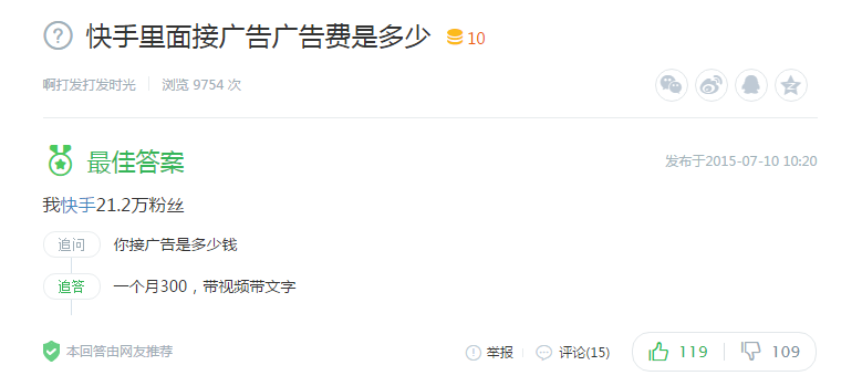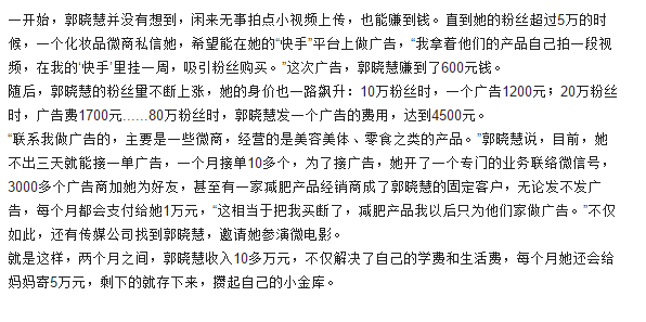 粉丝数量众多的快手大号,广(guǎng)告费用却极为低廉