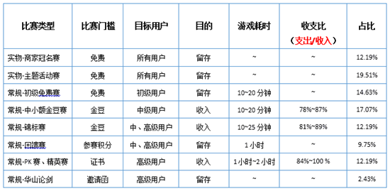 △做收入的比赛一般采用人满即开(kāi)的(de)比赛方式,做留存的比赛一般采用定时开(kāi)赛的比(bǐ)赛(sài)方式,保(bǎo)证(zhèng)成本可控。