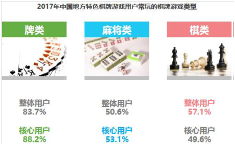 今年(nián)3月,艾(ài)瑞(ruì)咨询发布了《中国地方特色棋(qí)牌(pái)行业白皮书》 。报告指出2016年棋牌游戏市(shì)场规模达58.6亿(yì)元,地方地方线上棋牌市场(chǎng)占比超过线上棋牌总市场的(de)一半,达到38.4亿元;用户规模(mó)超1.57亿,占比超60.85%。移(yí)动(dòng)端线上(shàng)地方(fāng)棋牌的用户(hù)与市场规模(mó)均超(chāo)过PC端(duān)。