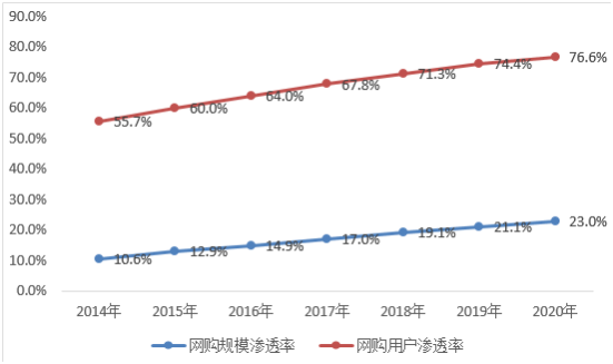 2014-2020年中国(guó)网购渗透率攀升