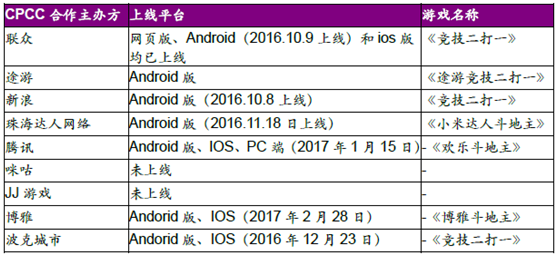 2016 年9 月3 日,国家体育总局(jú)棋牌运动管理中心和中国互联网上网服务营业场(chǎng)所协会共(gòng)同主办(bàn)的全国竞技二打一扑克锦标赛(CPCC)正式(shì)启动(dòng),赛事总奖金500 万元,联众成为9 家合作(zuò)主办方之一,并且是所有合作方(fāng)中最早实现网页版、androids 和ioses 版(bǎn)全(quán)上线的(de)平(píng)台。