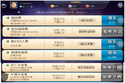 除免费(fèi)赛(sài)以外的比赛赢家可获取奖金(jīn)和大师分