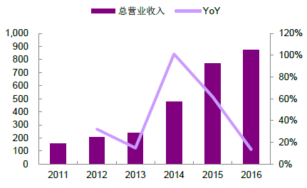 2011-2016总营业(yè)收(shōu)入(单位:百万人民币)