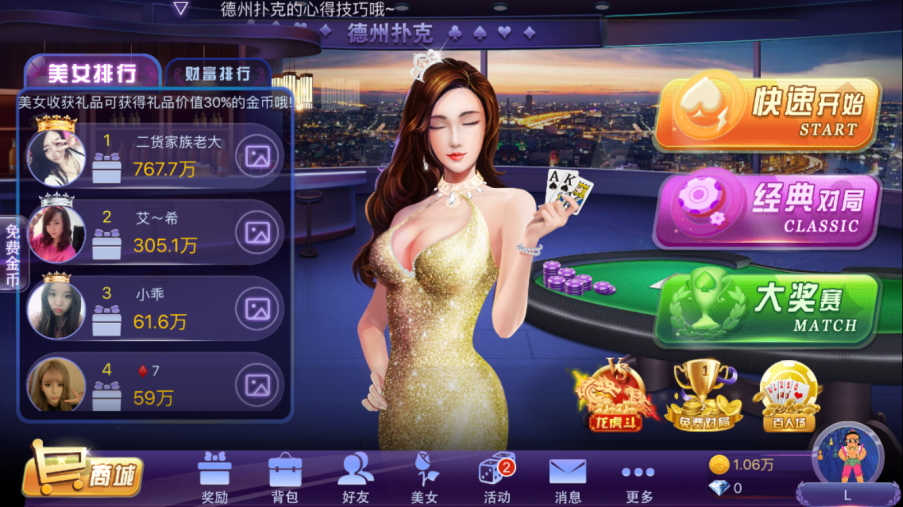 大厅以德州(zhōu)扑克为主导(dǎo)