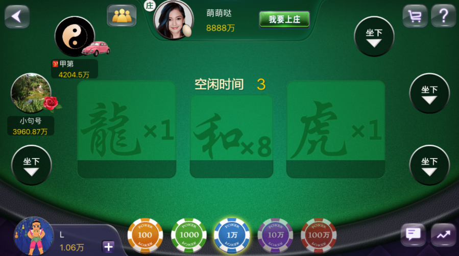可(kě)由系统坐庄的附带小游戏龙虎斗输赢则大的多