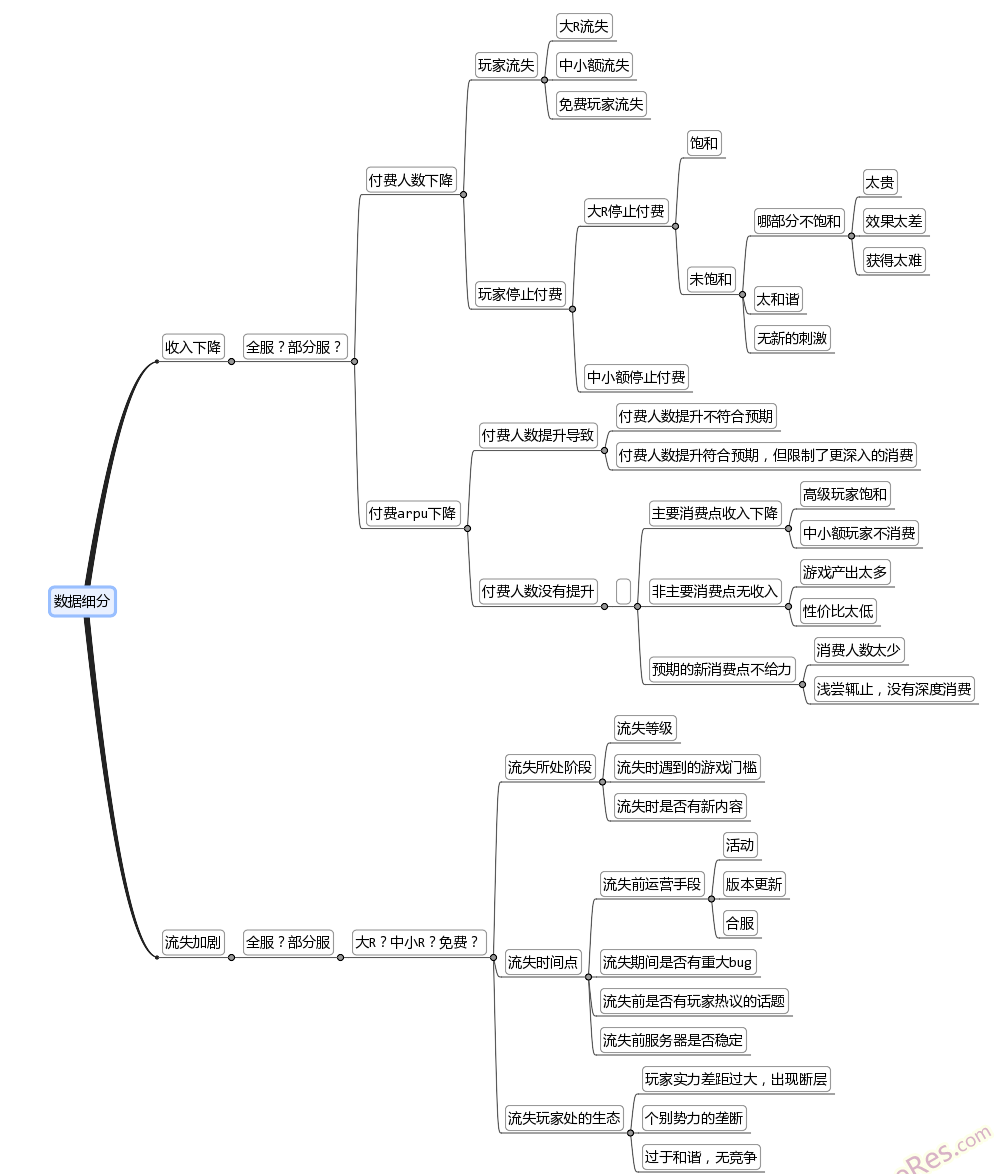 如上图(tú)中,当我们通过数据发现(xiàn)游戏(xì)里的大R流(liú)失了(le)。数据能(néng)做的就(jiù)已经到尽头了,数据(jù)无法告(gào)诉我们流失的具体原因。数据(jù)不能告诉我们用户是因(yīn)为公司破(pò)产而停止玩游戏,还是因为跑去玩(wán)其他游(yóu)戏了(le),还是因为玩累了不想玩了(le)…数(shù)据很多时(shí)候(hòu)也解释不清(qīng)楚,只是(shì)通(tōng)过数据(jù)的(de)不断(duàn)细分,我们能把问题的范围缩小再缩小,而不是在茫茫(máng)大海里找一(yī)根针。所(suǒ)以再(zài)牛(niú)B的数据分析师,如(rú)果不了(le)解产品,不了解用户,也没用(yòng)!