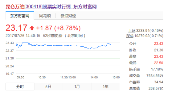 昆仑万维股价今(jīn)日开盘大涨10%,截止下午两点四(sì)十有些许(xǔ)回落