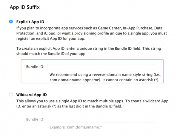 这里Bundle ID是要和(hé)Xcode项(xiàng)目中的Bundle Id 一致的。(最好将项(xiàng)目中的(de)Bundle Id复(fù)制(zhì)过来)