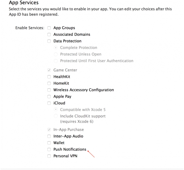 Notifications”勾选,反(fǎn)正就是项目用到(dào)什(shí)么功能(néng)或服务(wù)就把相应的选项勾(gōu)选。