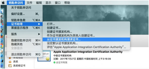 找(zhǎo)到mac 自(zì)带的(de)“钥匙串访问”软件,钥匙(shí)串访问-->证书助理-->从证书颁发机(jī)构请求证书