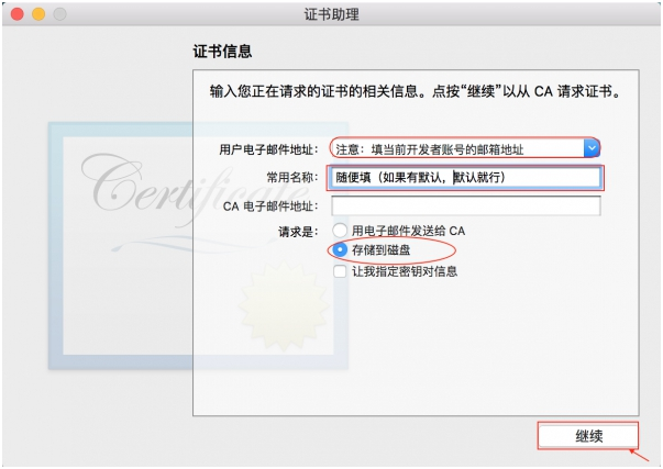 之(zhī)后在证(zhèng)书助理(lǐ)界面填写相(xiàng)关内容,并将保存(cún)到本地桌面。
