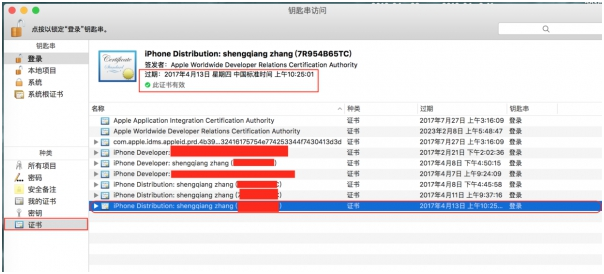之后我们(men)可(kě)以在(zài)“钥(yào)匙(shí)串访问”软件看到(dào)我们刚刚安装好的发布证书(shū)。