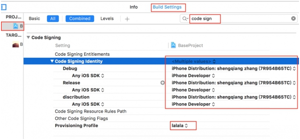 方案B.Target或(huò)者是Project的Build Settings-->Code Signing