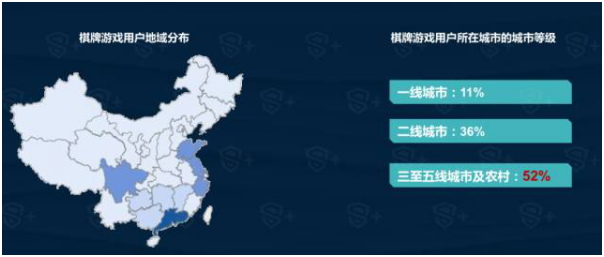 根(gēn)据数据显示,棋牌游(yóu)戏用户主要(yào)分布在沿(yán)海和四川等互联网(wǎng)人(rén)口大省,而(ér)在地方(fāng)棋牌玩法丰富的南方内(nèi)陆(lù)省份,也集中了大量的棋牌玩家,超过50%的(de)棋(qí)牌用户(hù)分布在传统互联网渠(qú)道较难触及的(de)中小城市及农村地(dì)区。不同类型的用户有不同(tóng)的诉求,CP可以通过(guò)了解用户的特点(diǎn)和(hé)需求,明(míng)确产品(pǐn)定位,有针对地对产品的(de)玩法功能进(jìn)行调(diào)整。